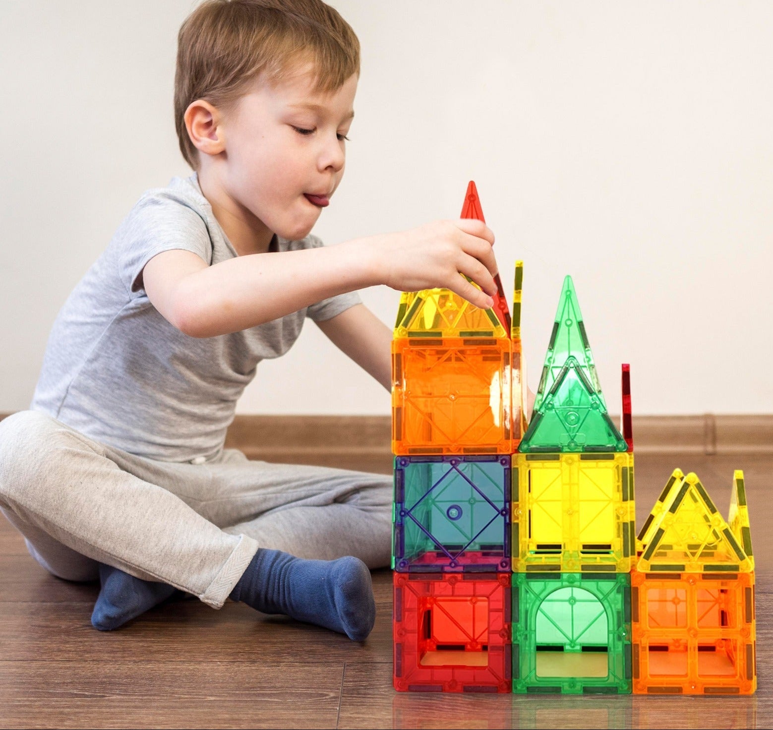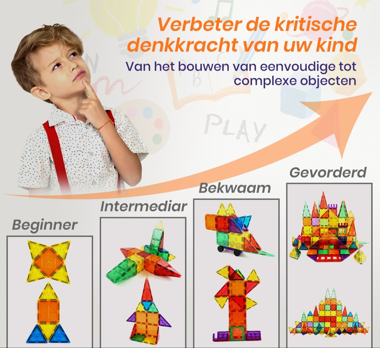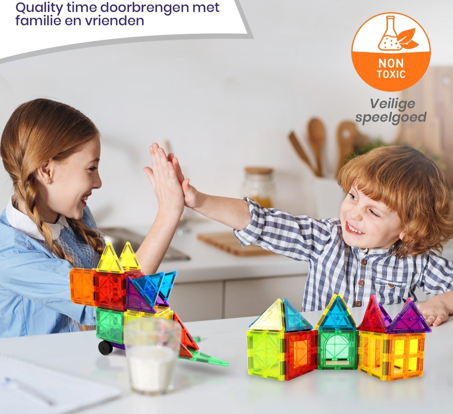Laat de creativiteit van uw kind volop tot bloei komen met onze uitgebreide Montessori-bouwset met magnetische tegels. Deze kleurrijke en leerzame speelset stimuleert fantasierijk spel en biedt eindeloze mogelijkheden om te bouwen, ontdekken en leren. Dankzij de krachtige magneten kunnen kinderen gemakkelijk stevige en stabiele constructies maken — van eenvoudige vormen tot indrukwekkende bouwwerken. Terwijl ze spelen, ontwikkelen ze niet alleen hun fijne motoriek, maar ook hun ruimtelijk inzicht, probleemoplossend vermogen en cognitieve vaardigheden. Een perfecte combinatie van spel en educatie die aansluit bij de principes van STEM-leren én Montessori-onderwijs.